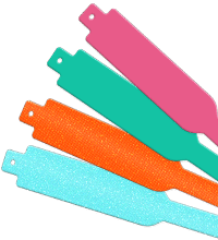 耐水性が高いビビッドカラーが目立つ高品質ビニール素材。屋外イベントや長時間の野外フェスに最適です。留め具へのスポンサーロゴ等の印刷も可能。質感や安全性、装着時の負担軽減にこだわった、独自開発商品です。